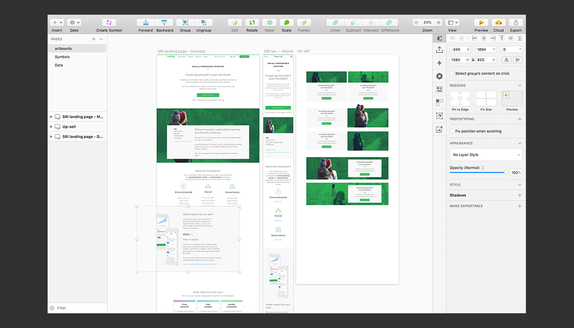 The approach I took was to bring a family and future feel to the product. Initially I wanted to use illustrations, and due to strong user testing results, found that photography gave more emotion. As investing can be an emotional challenge, this proved to tempt customers into choosing socially responsible style over the others.