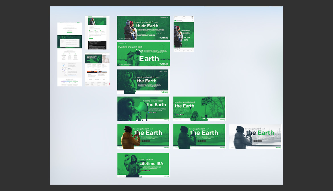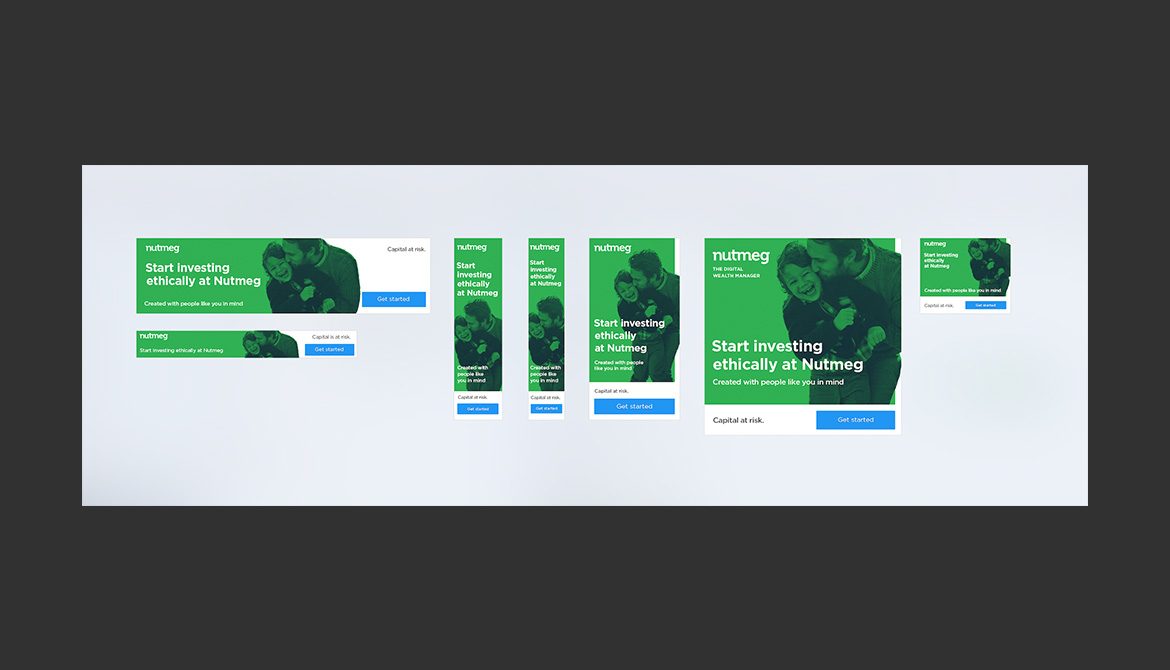 Using a green wash to bring into the Nutmeg brand, this stood out strongly on tube advertising and against the clean website.